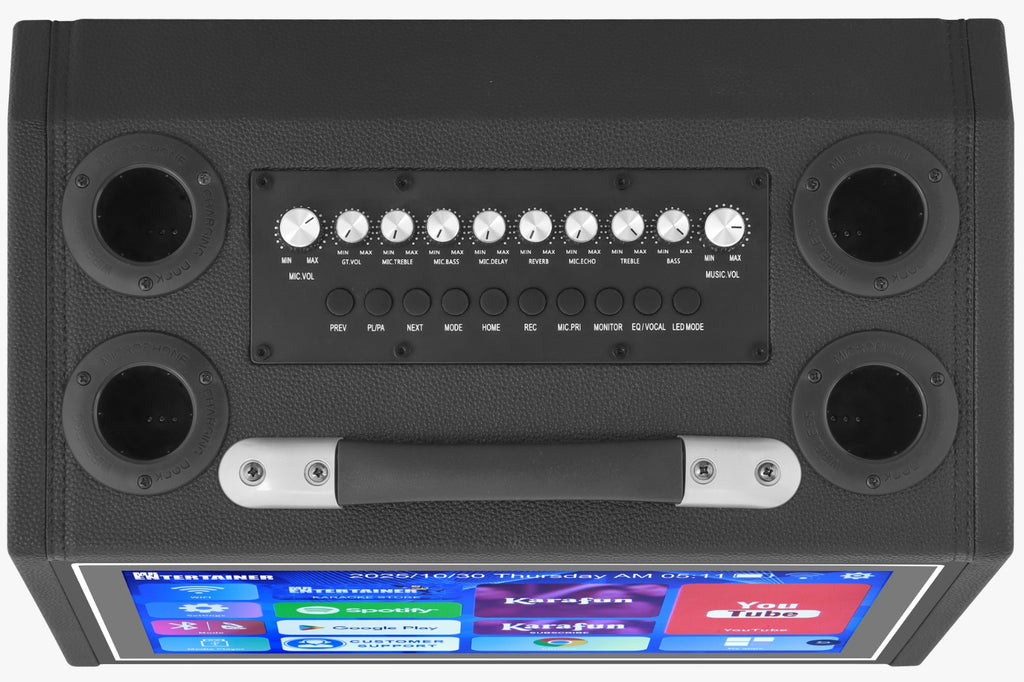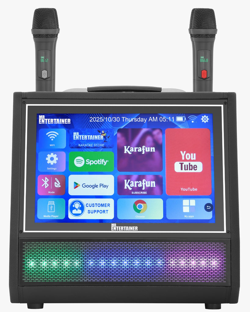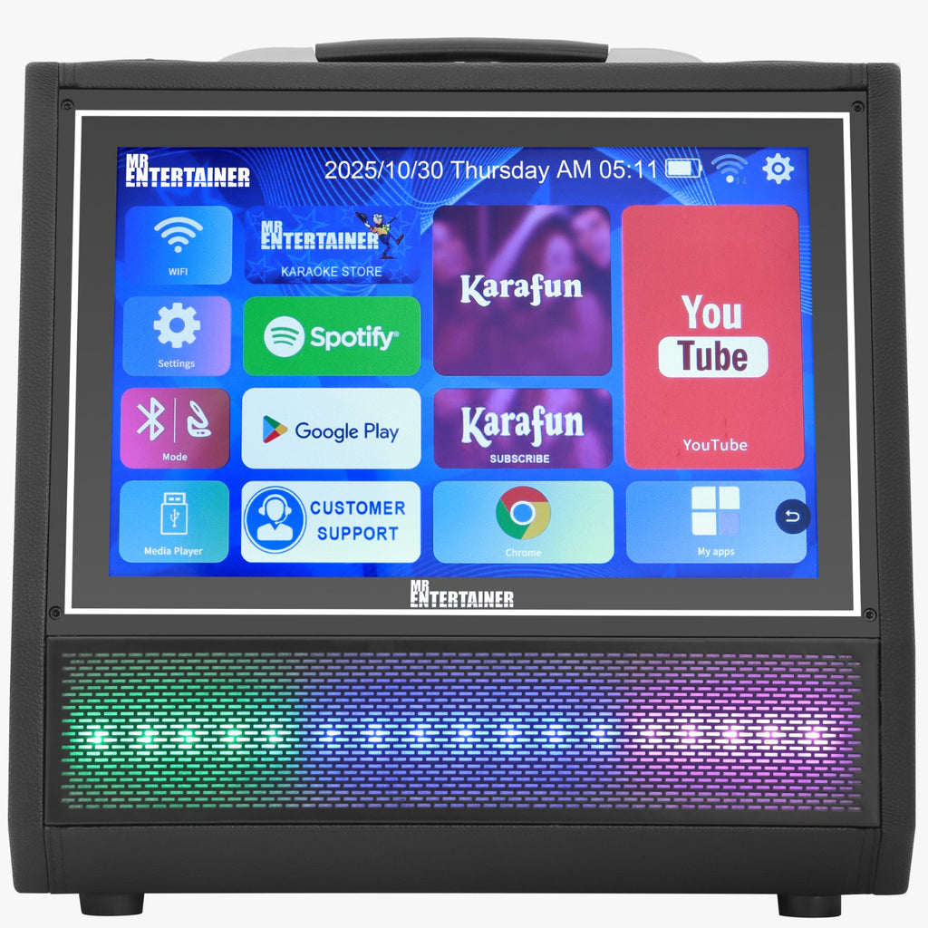 Take your parties and performances to the next level with the MAESTRO PRO from Mr Entertainer. Building on the success of the original Maestro, the MAESTRO PRO is bigger, louder and smarter in every way, combining a 15.4" Android touchscreen with a high-power 80W RMS / 400W Peak PA system and four wireless microphones with auto-charging docks.