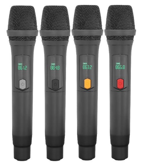 Includes 4x UHF wireless handheld microphones that recharge simply by placing them in the built-in docks. Super convenient for families, pubs and regular use.