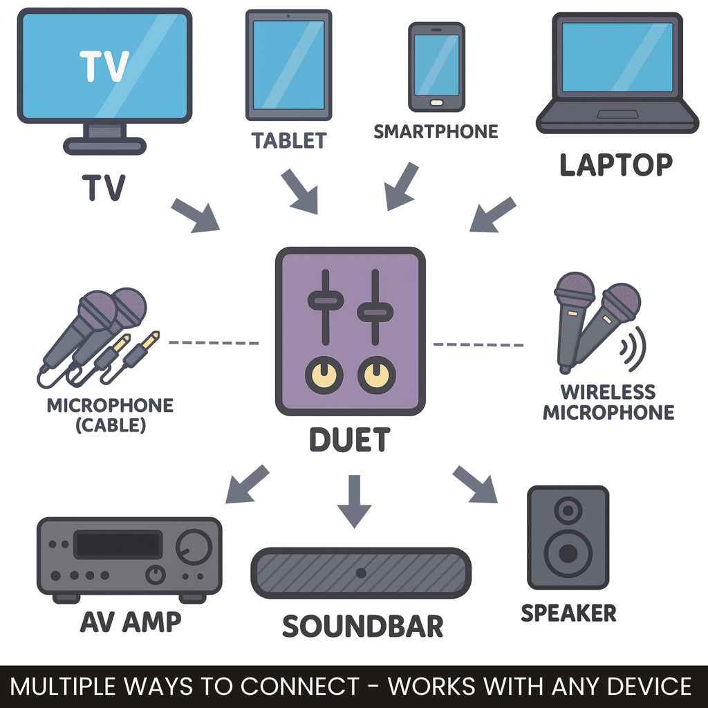 Complete Karaoke Experience: Connects directly between to your TV and soundbar or amp, turning your existing setup into a fully-fledged karaoke machine.